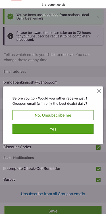Groupon’s unsubscribe page used a “Roach Motel” dark pattern - easy to join, hard to leave.